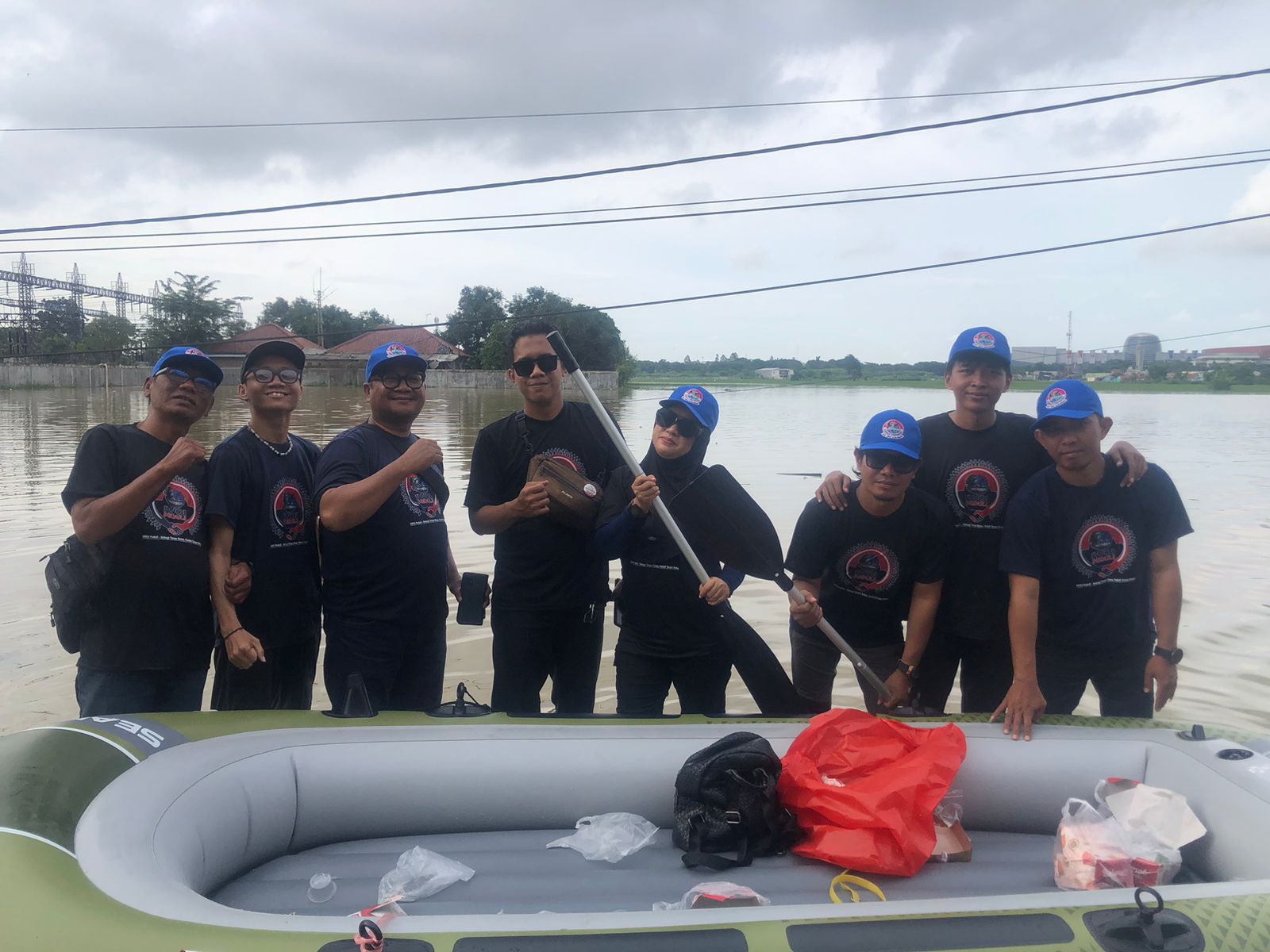 Untuk menjangkau warga di titik-titik terisolasi, Tim IWOI Peduli mengerahkan perahu karet yang dimiliki organisasi, menyusuri rumah-rumah warga di tengah genangan.